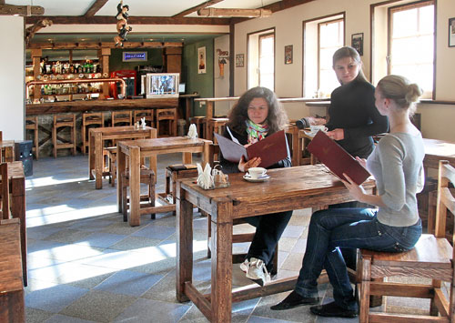 По выходным и праздничным дням здесь полно народу. Посетители могут разместиться на удобных стулья, за удобными столиками. Быстрое обслуживание гарантируется.