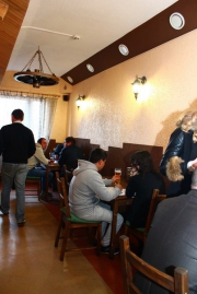 Внутренне убранство бара полностью соответствует его названию, таким образом, это заведение вполне можно назвать полноценным охотничьим домиком со всеми положенными атрибутами. По периметру зала расставлены удобные деревянные столы и стулья, где с комфортом располагается большое количество гостей.