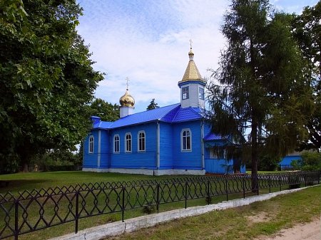 Снаружи храм обшит тесом и окрашен в бело-голубые тона. Прилегающая территория храма облагорожена и обнесена металлической оградой. От злых ветров и ненастья храм заслоняют большие деревья, видимо посаженные в день основания храма.