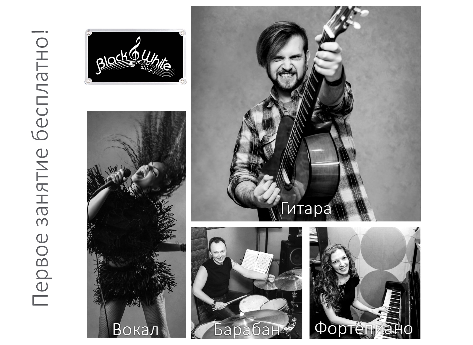 "Black&White" –профессиональная музыкальная школа в Минске, приглашает на обучение детей и взрослых от 6 лет по следующим направлениям: