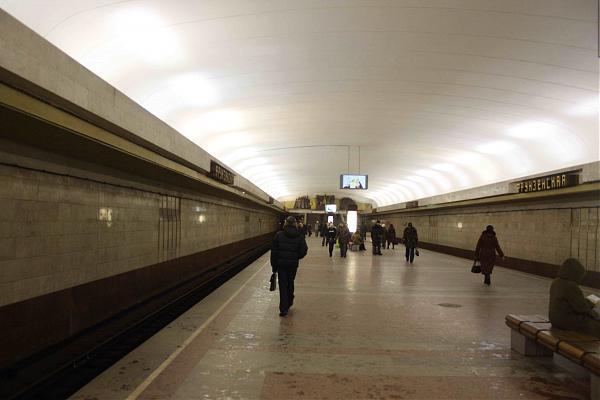 «Фрунзенская» - станция неглубокого заложения, односводчатая. Платформа у станции одна, прямая, островного типа. Пол платформы отделан гранитом красного и серого цветов. Путевые стены облицованы светлым мрамором. Свод станции – белого цвета. Путевые стены и свод разграничивает массивный карниз. За ним установлено скрытое освещение, которое подсвечивает свод станции. В торцах платформы, над лестницами установлены художественные конструкции, выполненные из латуни.