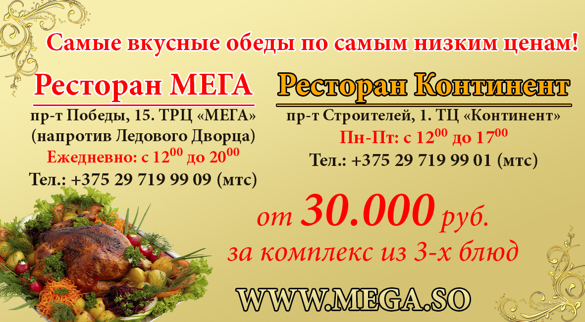 В стенах Торгово-развлекательный центр «МегаЦентр» удачно расположился Ночной клуб-ресторан «Мега», включающий в себя первый в Беларуси двухуровневый танцпол и ресторан, интерьер которого исполнен в лучших европейских традициях. Посетителей заведения привлекает не только его удачное месторасположение, но и разнообразное меню, широкий ассортимент напитков, возможность бесплатной парковки личного транспорта.